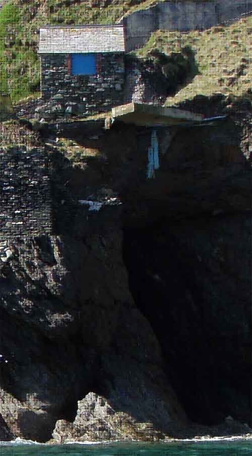 - Wave action that gradually eroded the rock platform, undercutting the overlying head deposits (causing the cave in the pictures) in the vicinity of the stone barn.