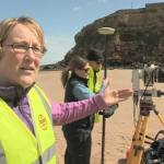 Geologists Helen Reeves, Claire Dashwood and Pete Hobbs carrying out a laser scan survey of the north-facing cliffs of the Pen Bal Crag headland from Short Sands beach in King Edward’s Bay, Tynemouth (summer 2013). BGS © UKRI.