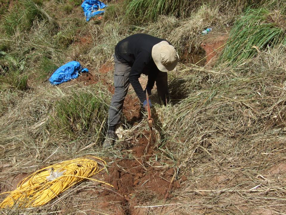 In Munnar, the electrical resistivity tomography (ERT) monitoring system is currently composed of four parallel lines of 32 electrodes installed on the slope. Two of these lines have been collecting ERT data on a daily basis since November 2017. The two other lines were connected to the PRIME system early in 2019. Ongoing efforts in collaboration with our local partners are due to expand the monitoring array in the future, to improve 4D imaging of the slope.