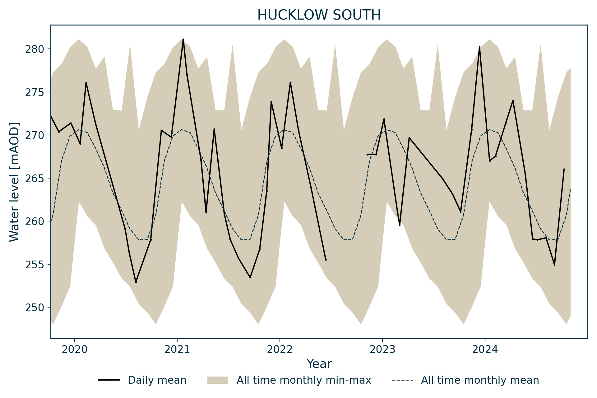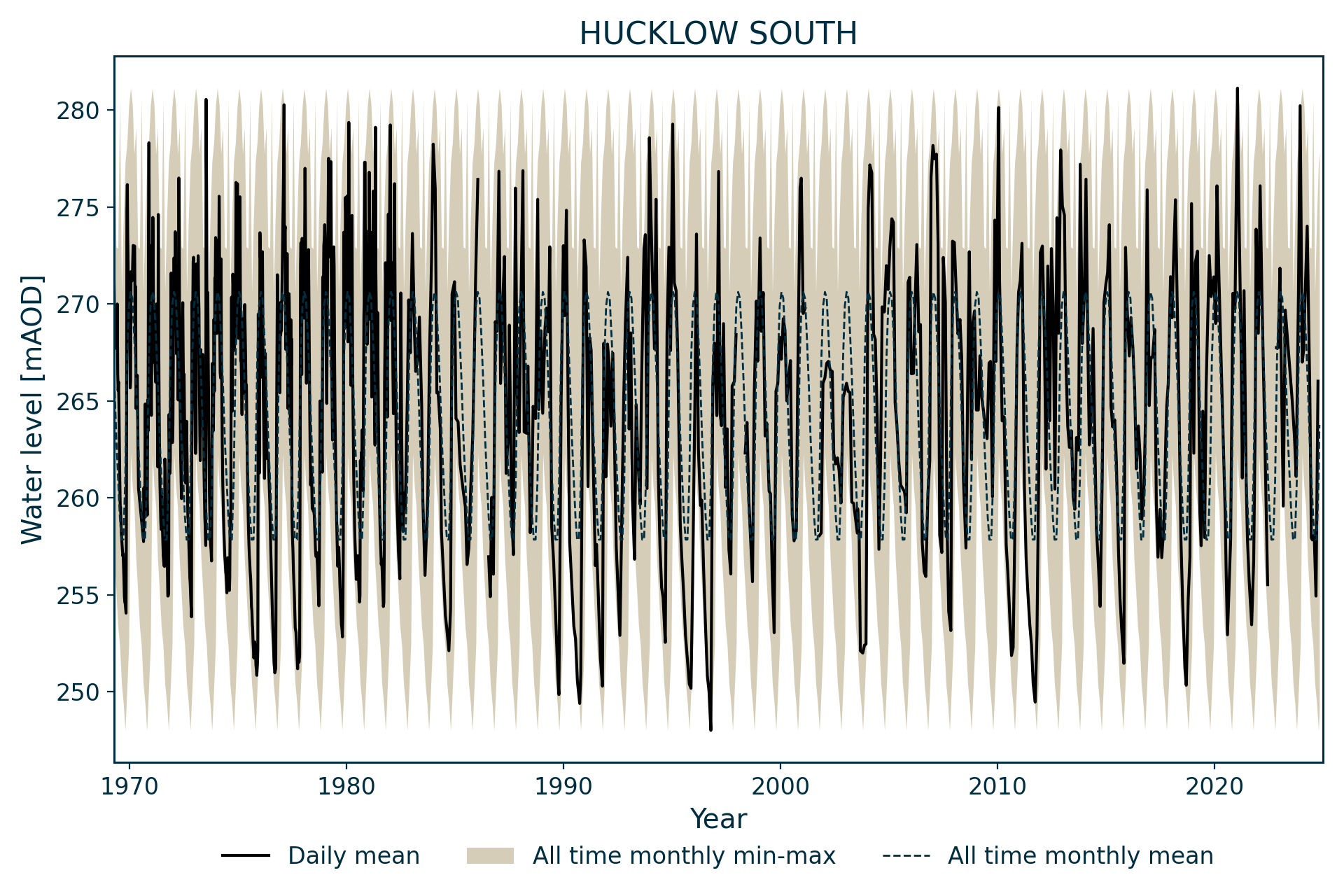 The water is unconfined, with a large seasonal range of about 25 m. The water level fluctuates between the Eyam and Monsal Dale limestone formations. The borehole is likely to be fully penetrating, as it is probable that the Litton Tuff Member and Cressbrook Dale Lava Member form an effective base to the aquifer.