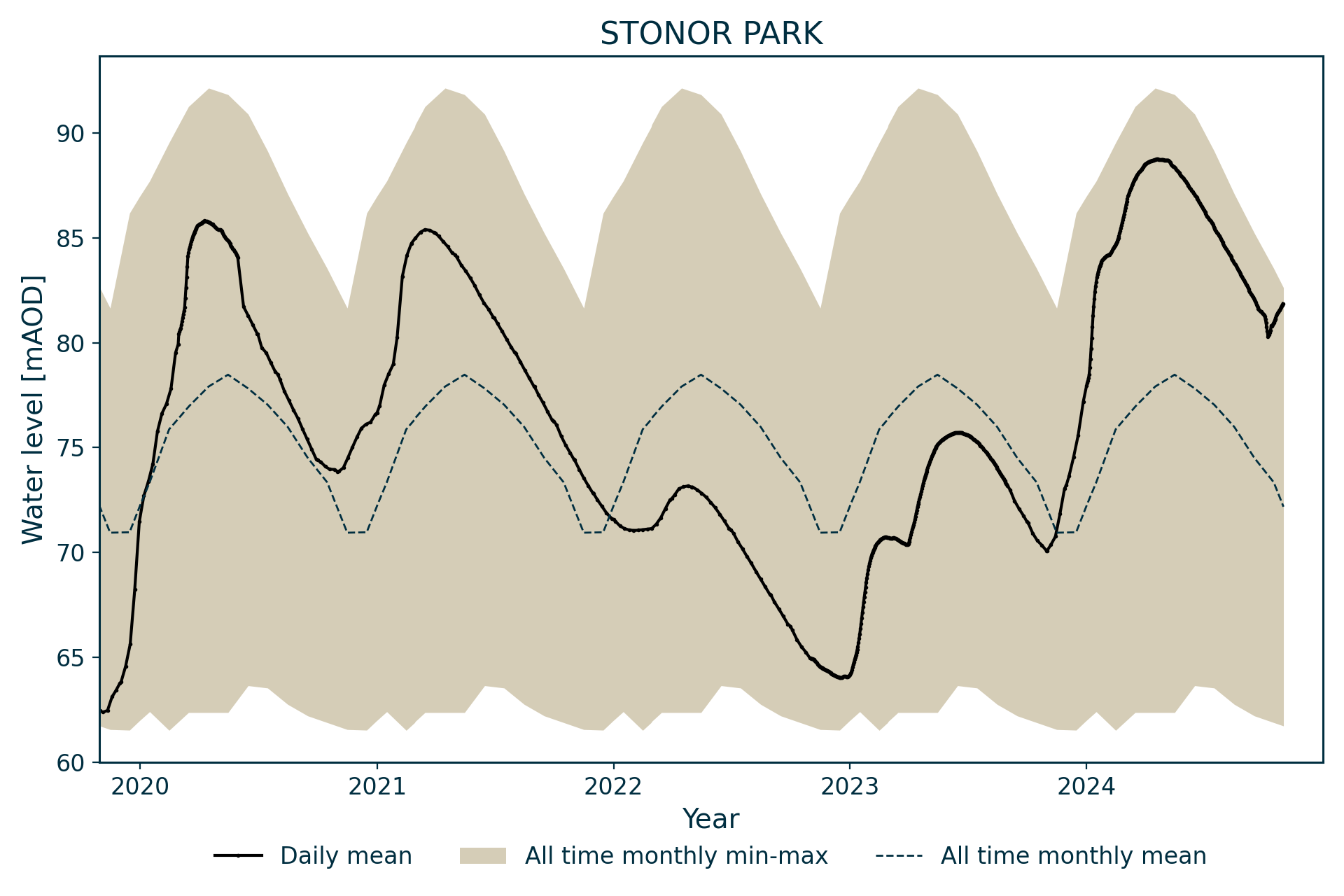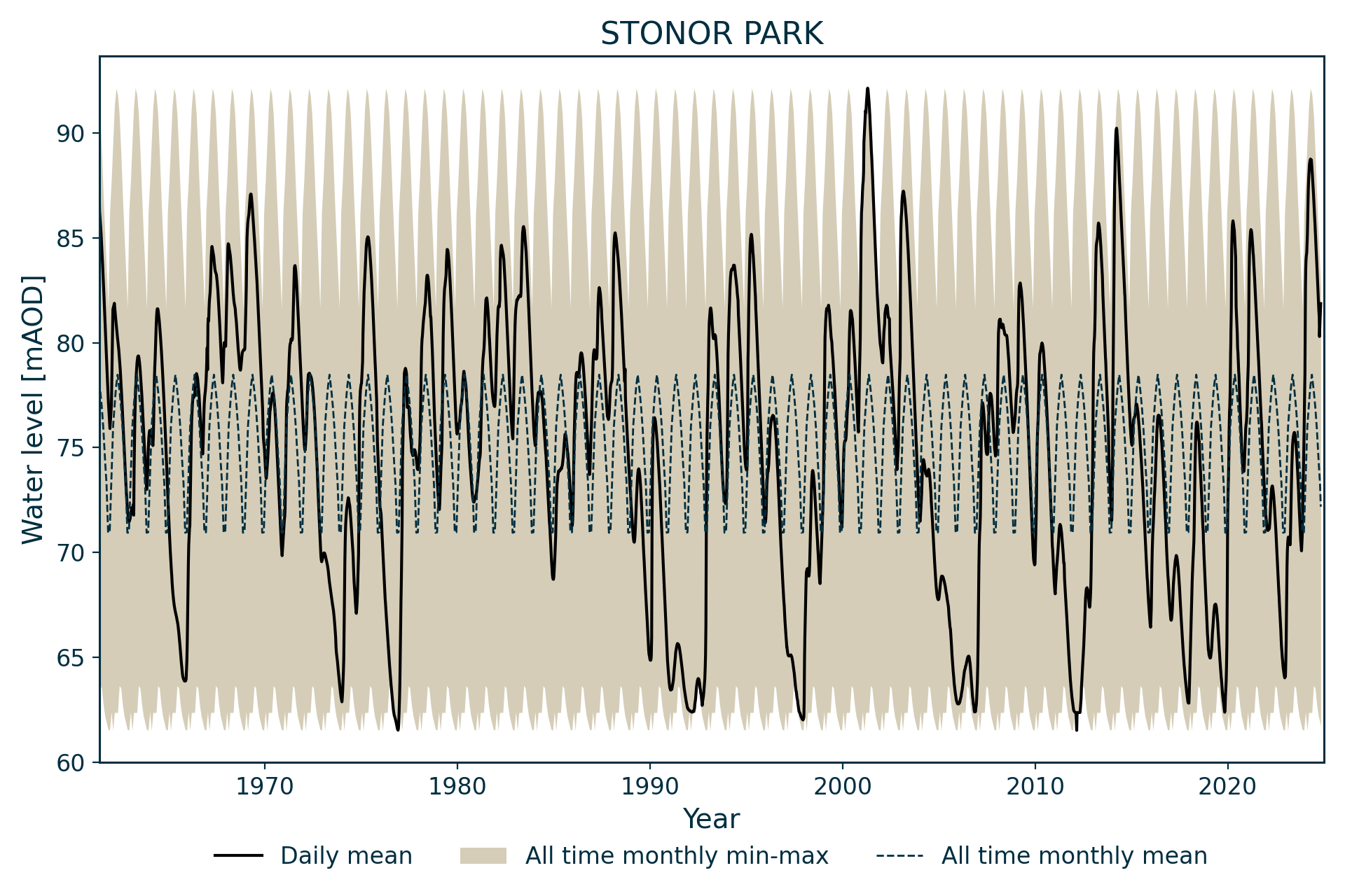 The Stonor Park well, measuring levels in the Chalk Group aquifer near Henley-on-Thames in south-east England. Its hydrogeological setting and the absence of major abstractions in its vicinity mean it is often cited as a ‘typical’ chalk observation well.