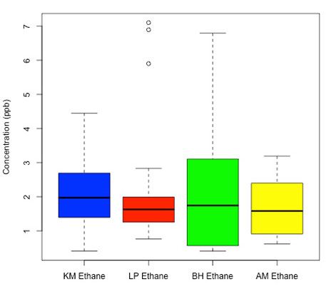 Samples for hydrocarbon (C2 to C6) analysis were collected weekly in special canisters from both the Little Plumpton (Lancashire) and Kirby Misperton (Yorkshire) sites and returned to the WACL laboratory at the University of York’s Wolfson Atmospheric Chemistry Laboratories.
