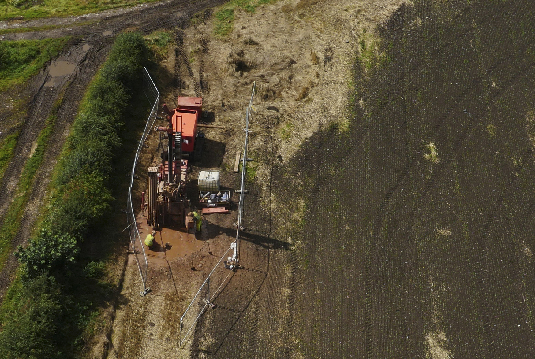 Drilling shallow boreholes in Fylde, Lancs for monitoring groundwater quality close to sites proposed for exploration of unconventional hydrocarbons. BGS © UKRI.