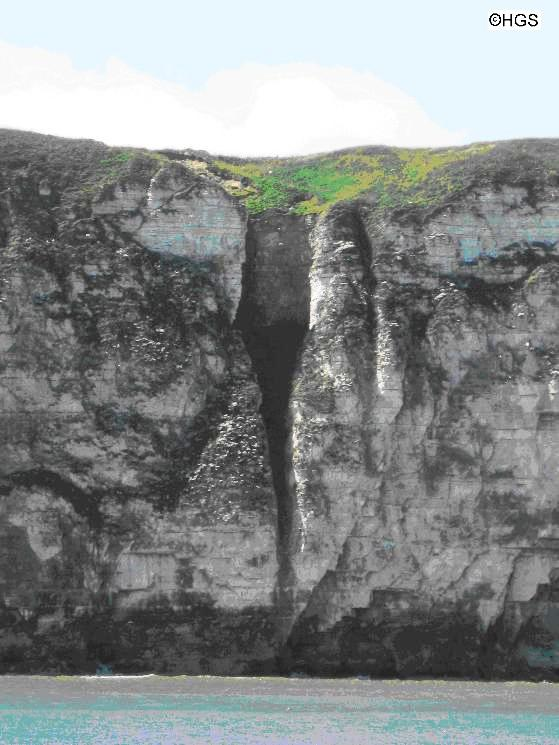 Solution pipe at Bempton Cliffs, Yorkshire. © Derek Gobbet, Hull Geological Society.