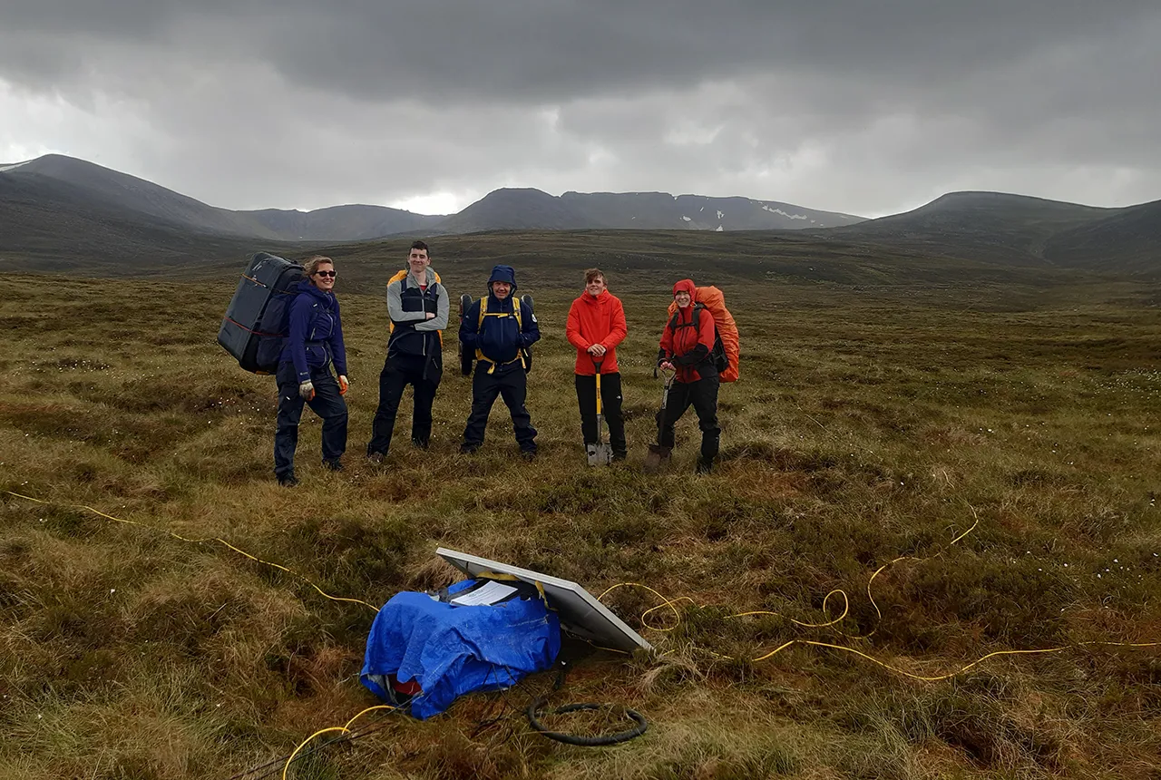 Conducting fieldwork in the beautiful but bleak Cairngorms is both rewarding and challenging. With no roads in much of the area, we had to carry our equipment, including a 20 kg battery, over many kilometres of hiking paths and sometimes beyond any trails. Navigating deep bogs, steep bouldery terrain and elevations of up to 1250 m while braving sudden weather changes was an adventure in itself. In June 2024 we had seven consecutive days of snow fall on the mountain!